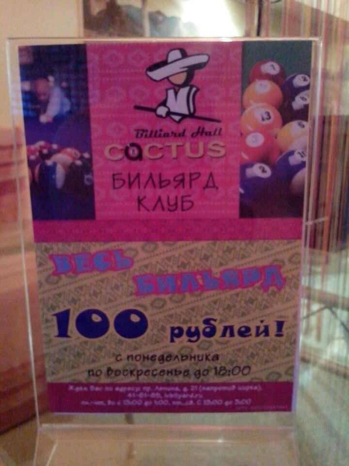 ✌ Адрес, телефон, часы работы и 6 отзывов посетителей о «Бильярдный клуб Кактус».