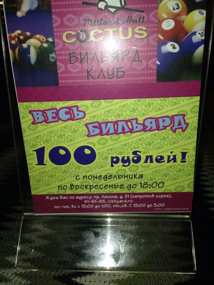 Бильярд в Иваново | бильярдный клуб "Кактус", спорт бар | спортивные трансляции, корпоративные турниры в Иваново